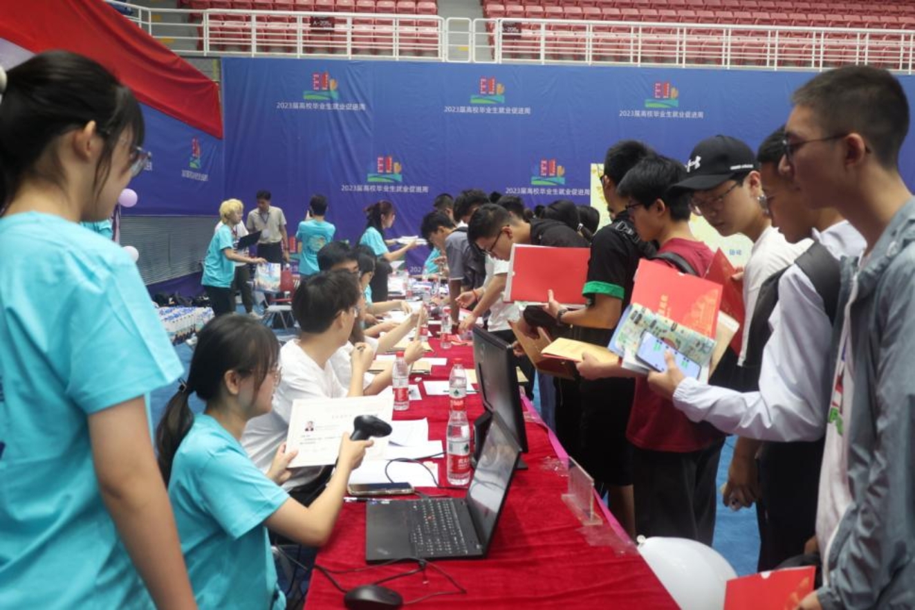 “身份验证→档案、团组织关系材料提交→户口迁移办理→资料袋发放→保险缴费”,在体育馆中,新生们集中地完成了各个报到流程,成为了一名真正的北科人!