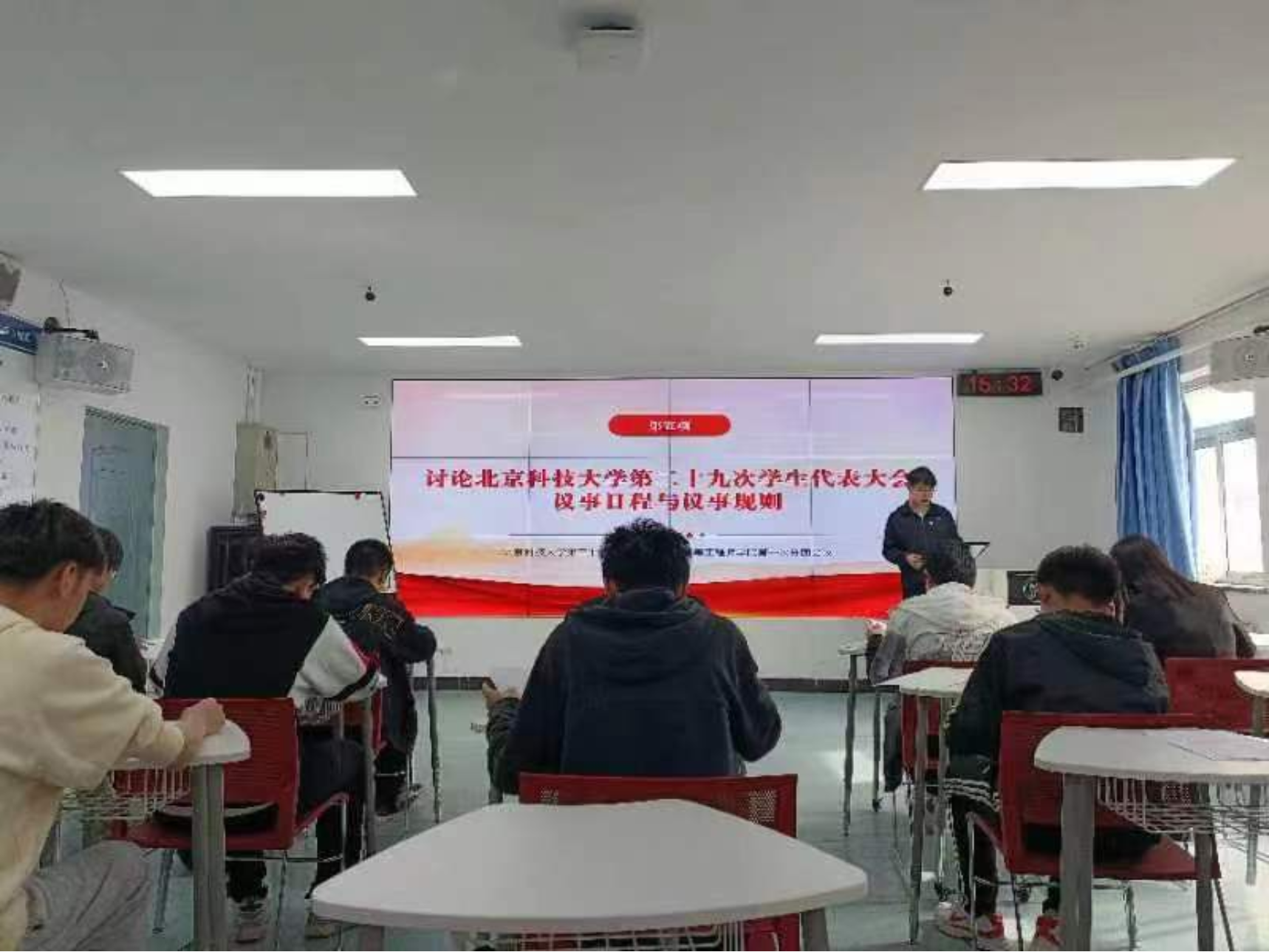 会议最后,代表就现有会议资料,对大会议事日程及议事规则、第二十九次学生代表大会秘书长名单、第二十九次学生代表大会主席团名单、第二十九次学生代表大会代表资格审查委员会名单、第二十九次学生代表大会提案审议委员会名单、第二十九次学生代表大会代表资格审查委员会名单和第二十九次学生代表大会选举办法这七件事项进行讨论并举手表达观点和疑问,最终,经与会代表讨论,全票通过上述内容。