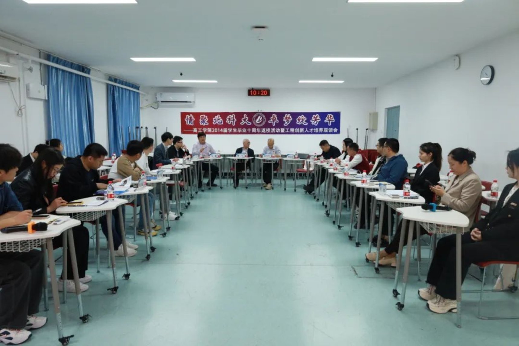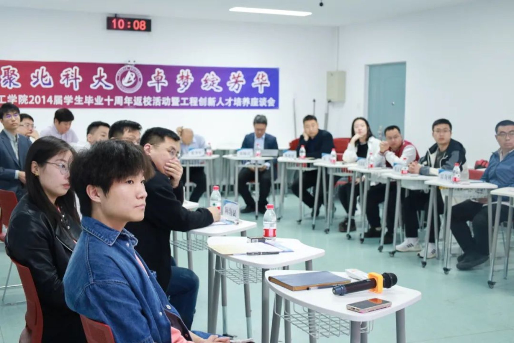 校友颜阳、张玲、肖珣、张游游围绕“工程创新人才培养”进行主旨分享。他们与老师、辅导员一起回忆了当年美好的校园生活和学习实践场景,分享了自己毕业后的工作经历和心得感受,同时为学院的校企合作、人才培养工作提出建议。