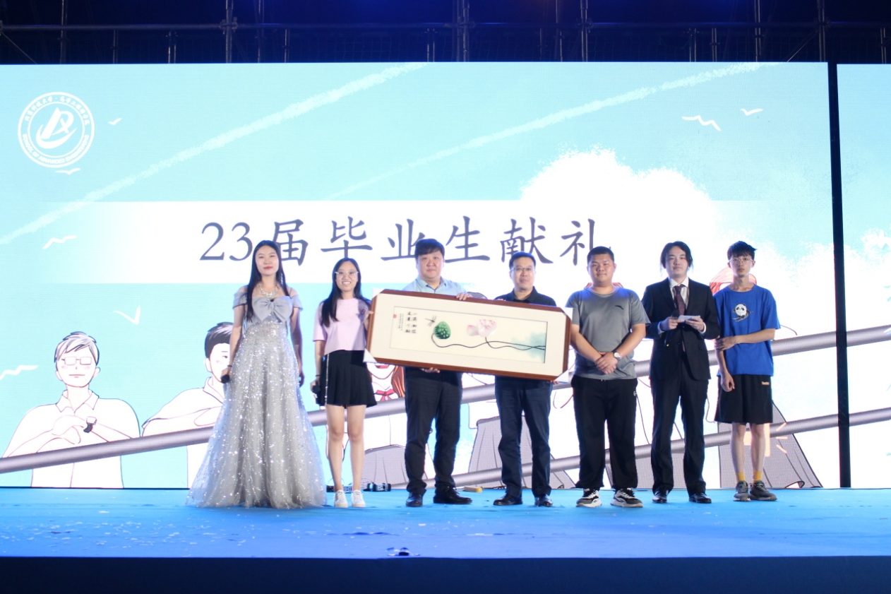 学院党委书记马聪在毕业生晚会致辞中向圆满完成学业的毕业生同学们致以美好祝愿,向所有为同学们成长成才耕耘奉献的师长亲友们,致以衷心感谢,希望同学们在开启一段新的人生征程时在行囊中备上来自北科大的三样东西——一块石、一抔水和两抹鲜明色彩。