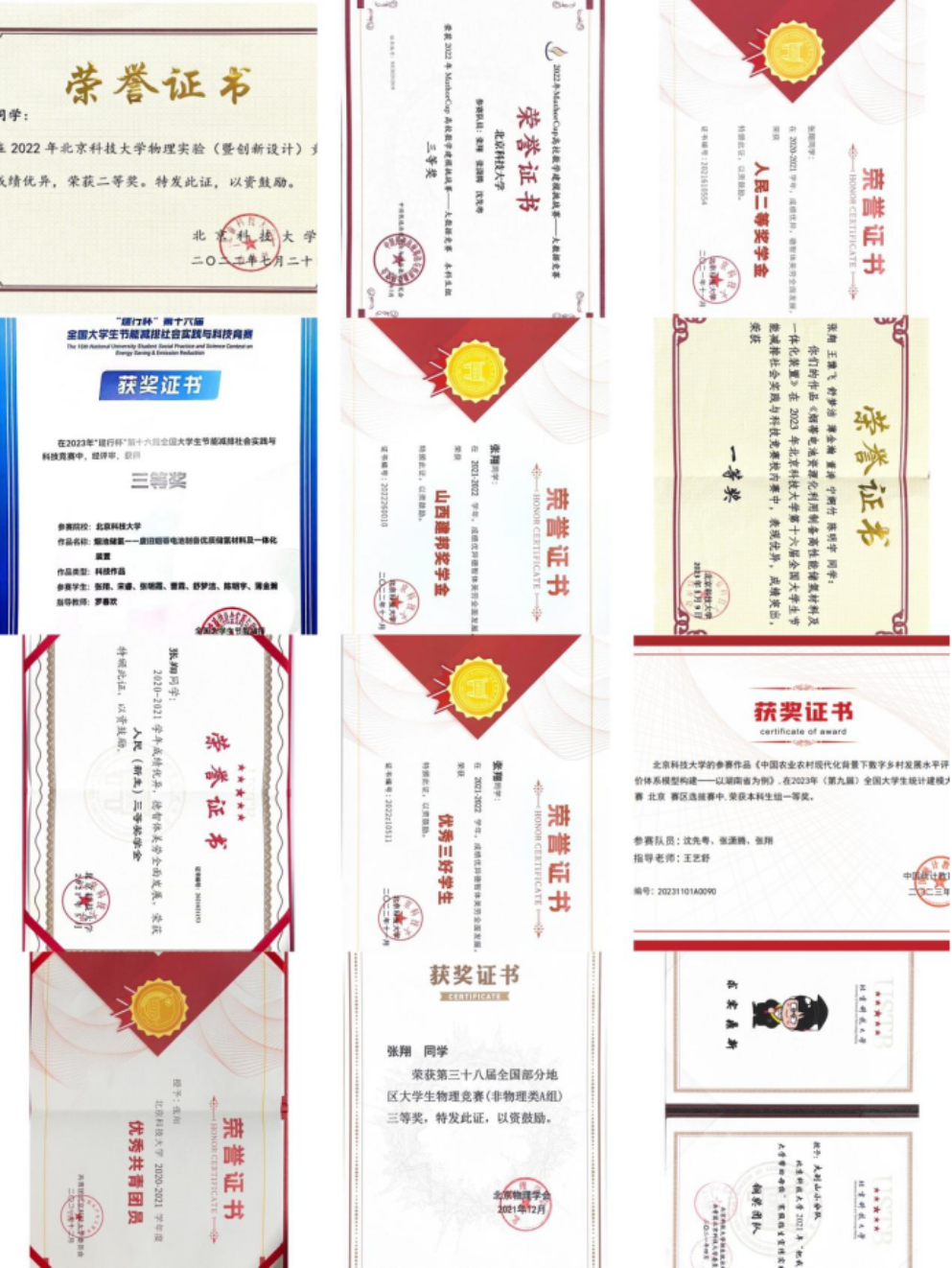 曾获全国大学生节能减排社会实践与科技竞赛三等奖、全国大学生统计建模北京市一等奖、全国部分地区大学生物理竞赛三等奖、MathorCup高校数学建模挑战赛——大数据竞赛三等奖、Williamhill中文节能减排竞赛一等奖、物理实验竞赛校赛二等奖、电子设计大赛校赛三等奖、寒假实践铜奖、暑期实践银奖、院摄影大赛二等奖。曾担任校学生发展与指导中心工科物理组讲师及组长、《钢铁生产全流程副产石墨的高值化利用》项目负责人。