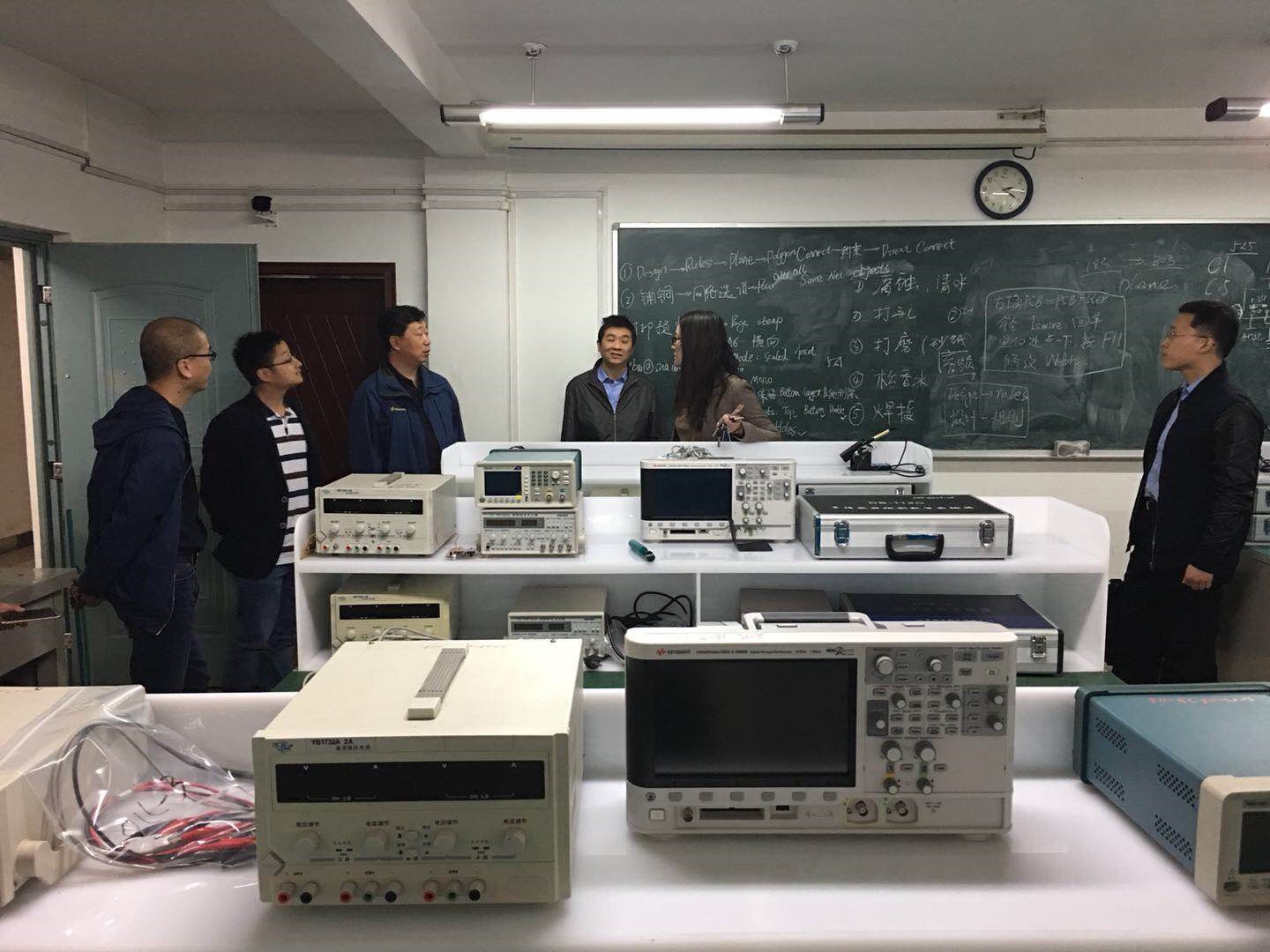 随后william威廉英国电子实习基地主任周珂带领各位老师参观了E-Center的各实验室,并详细介绍了实验室智能管理系统、电子班牌、实践教学数据统计分析等工作开展情况。