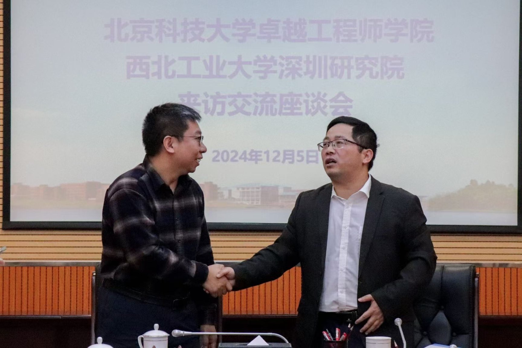 佛山大学研究生院院长谭海曙、科学研究部(校地合作办公室)副部长何宽芳及研究生院副院长阳佑天,西北工业大学深圳研究院副院长杨亮一行一同参会。