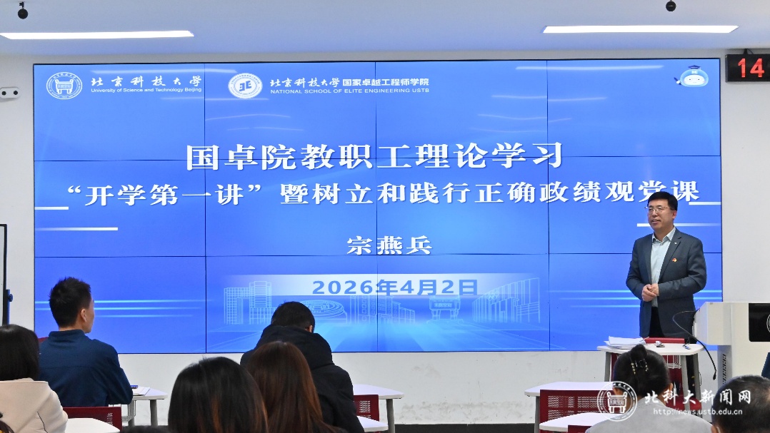 4月2日,国家卓越工程师学院党委召开全体教职工理论学习“开学第一课”。学院执行院长宗燕兵以树立和践行正确政绩观为主题讲授专题党课,并对学校、学院 2026年工作要点进行深度解读。会议同步部署了师德师风建设、清明节假期节前安全与廉洁教育等工作,全院教职工参加学习。