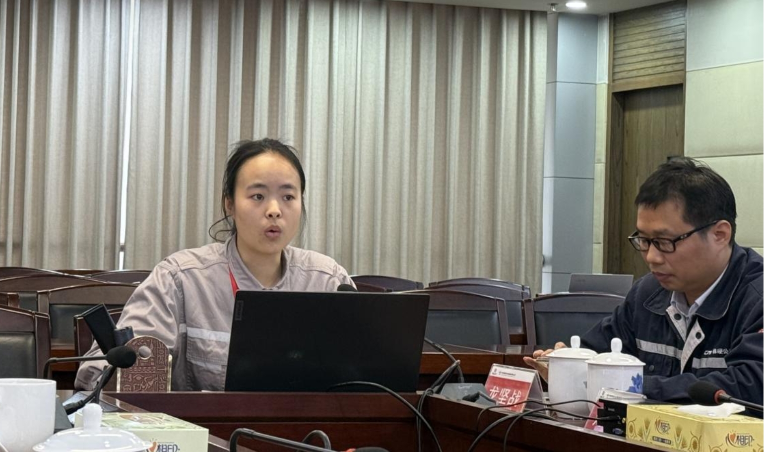 已入企学生代表解彬围绕入企实践与生活情况、课题项目进展、个人收获和感悟等方面进行了分享。