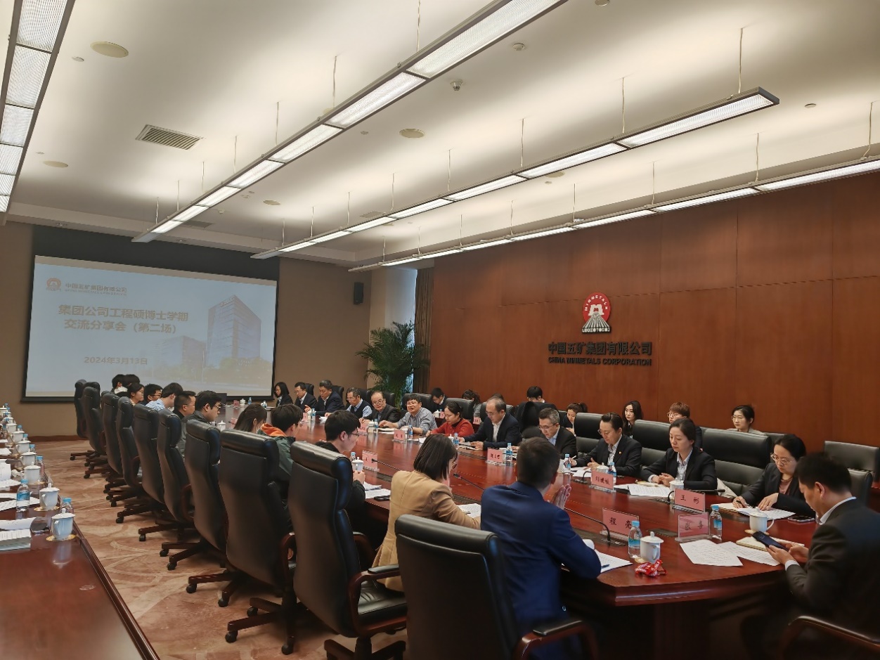 3月13日,中国五矿第二场工程硕博士学期交流分享会在五矿广场会议室举行。中国五矿集团有限公司及所属中冶建研院、中冶京诚、中冶赛迪、勘查公司、五矿盐湖的组织人事、科技部门领导,校企导师、部分合作高校代表一同参会。我校与中国五矿联合培养的2022级工程硕博士和2024级拟录取学生参加此次会议。