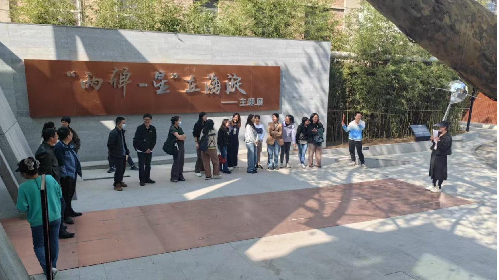 学院教师们在“东方红一号”卫星诞生地——北京卫星制造厂科技园园区内漫步参观,感受中国航天事业的重要基石和厚重的历史记忆。在展厅讲解员的引导下,大家依次参观了“历史回响”“科技之光”“精神传承”三大主题展区。展馆内,从钱学森、邓稼先等科学家的手稿笔记,到“东方红一号”卫星的复原模型,再到海淀区参与“两弹一星”工程的珍贵史料,无一不彰显着科技工作者们“胸怀祖国、服务人民”的赤子之心和心有大我、至诚报国的理想信念。