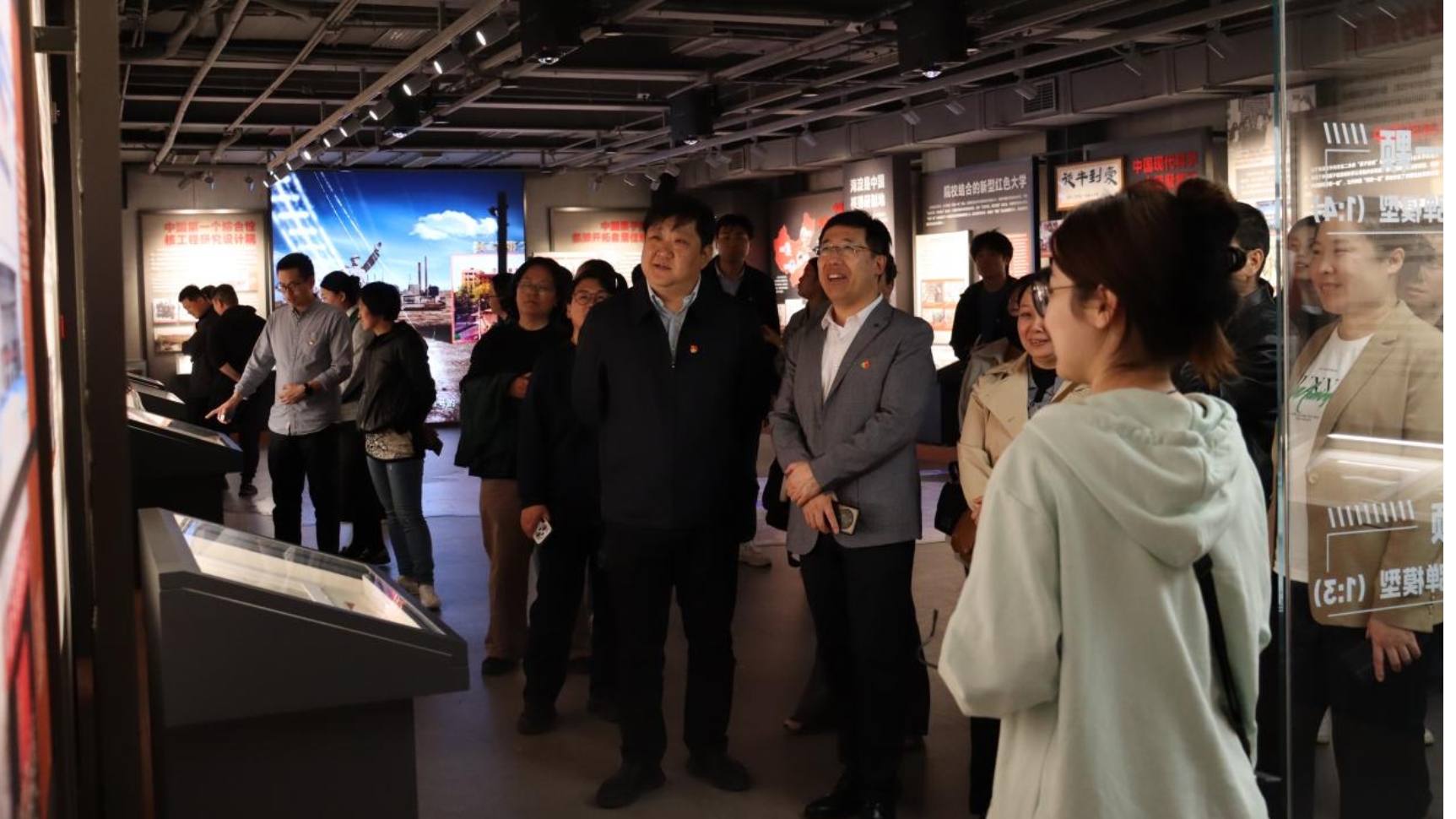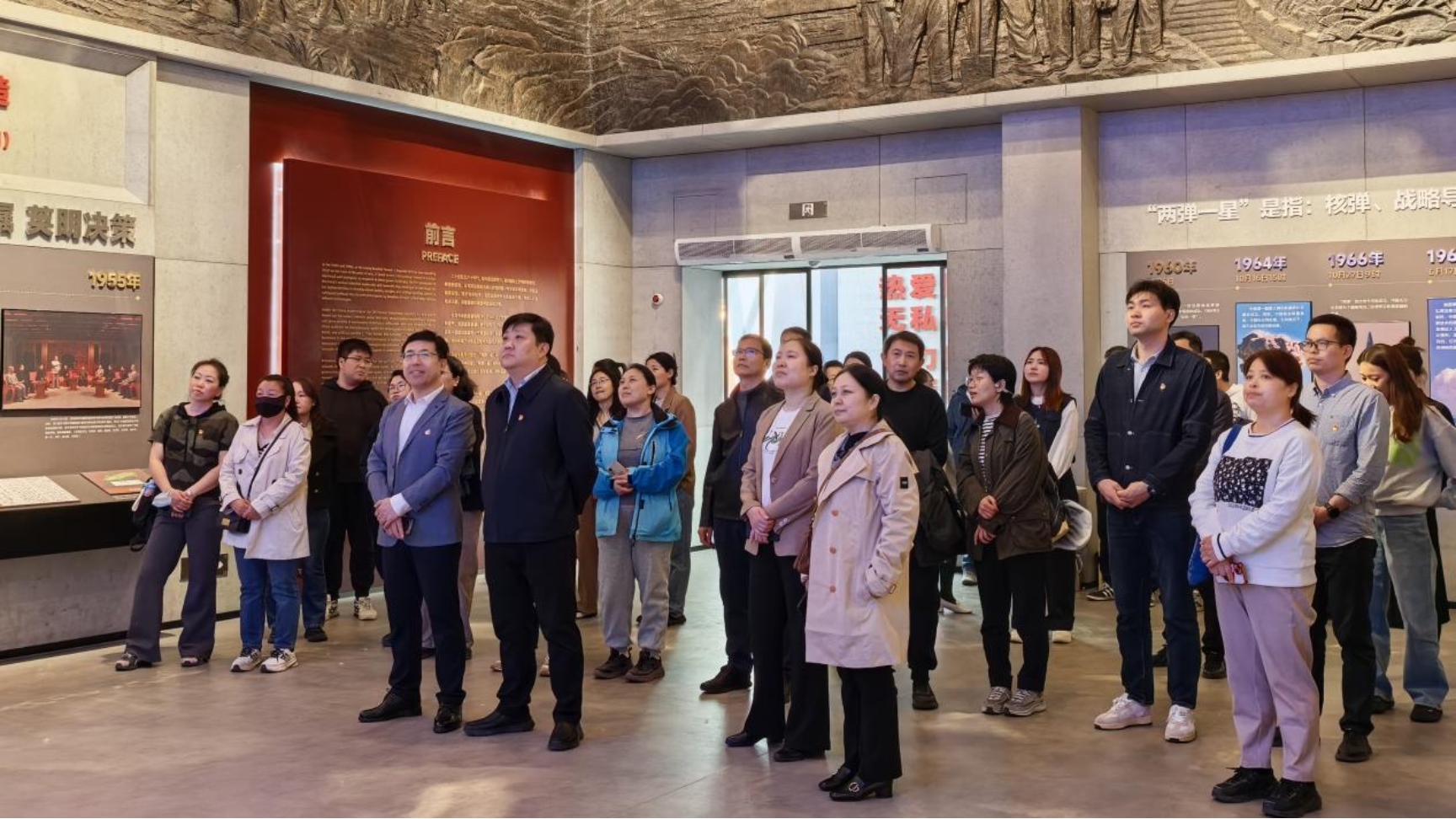 为弘扬科学家精神,传承科技报国的理想信念,4月10日下午,william威廉英国党委书记马聪,院长宗燕兵带队赴北京卫星制造厂科技园开展“‘两弹一星’在海淀”主题展参观学习活动。学院教师通过沉浸式参观、聆听专题讲解、参与互动答题,深刻感悟老一辈科学家“干惊天动地事,做隐姓埋名人”的奉献精神,从中汲取新时代教育者的使命力量。