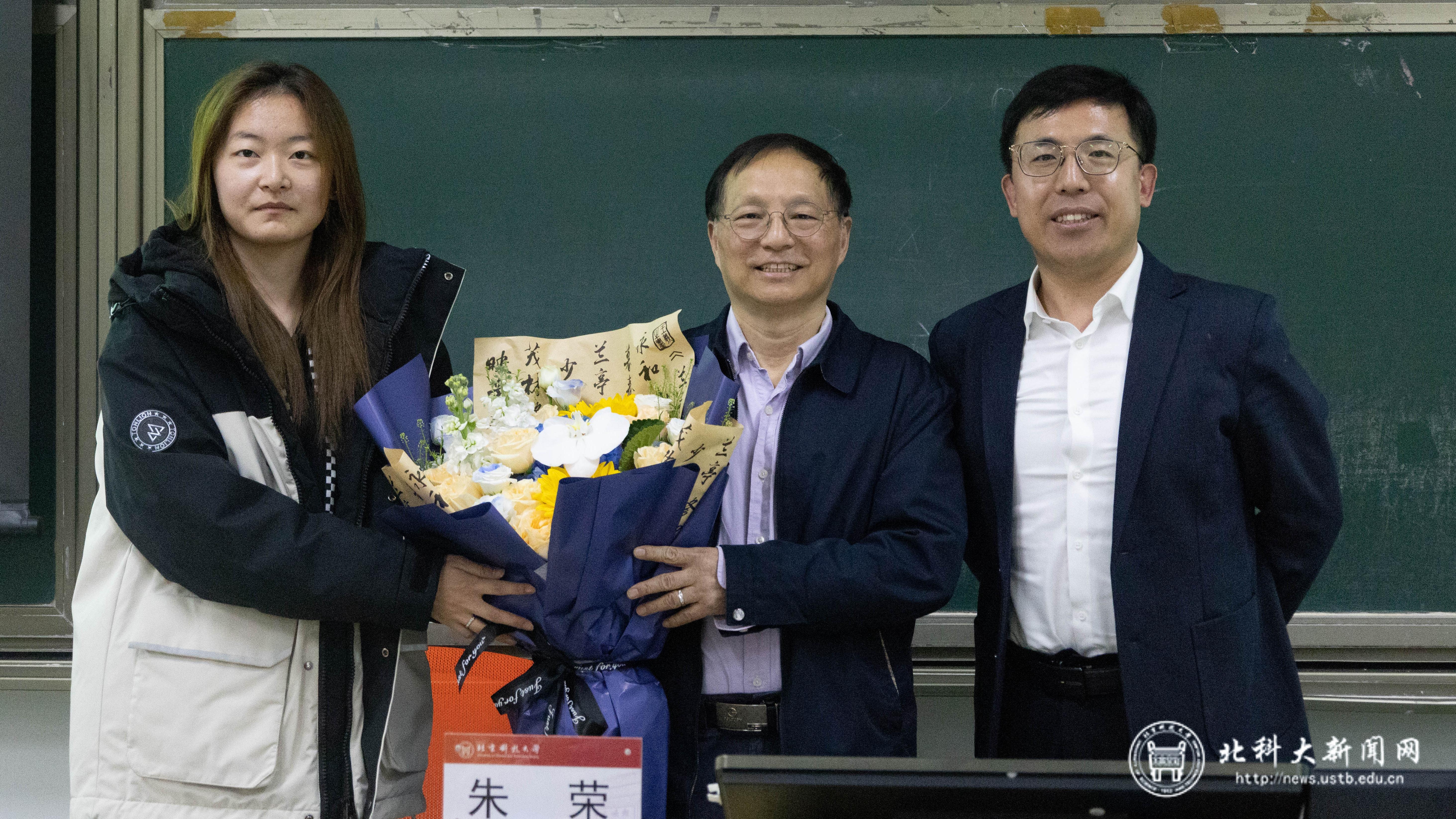 学生代表向朱荣院士献花