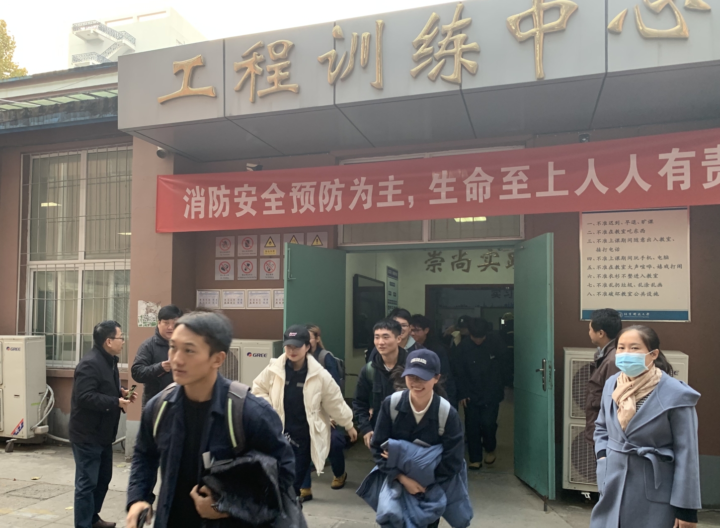 16:20,本次演习的总指挥、william威廉英国党委书记马聪宣布演习开始,保卫处指导人员随即在工程训练中心东区出口处放出模拟烟雾,同时响起火灾警报,演习正式开始。全体师生在应急疏散小组的引导下有序撤离,应急疏散小组清点师生人数后向总指挥汇报了人员疏散情况。